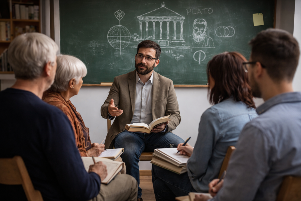Διαδραστικά σεμινάρια φιλοσοφίας με έμφαση στον διάλογο και την κατανόηση.
